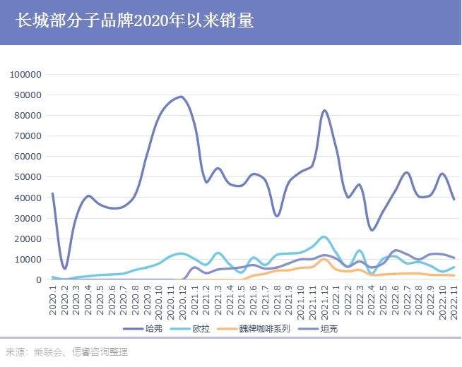 在中高端20-50万区间,坦克、沙龙分别定位于越野蓝海市场、机甲蓝海市场;