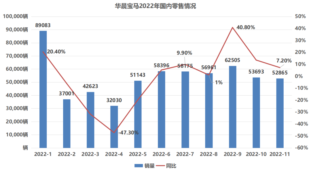 近日,乘联会公布了一组国内厂商零售数据,其中,销售排名第12的华晨宝马在11月销售汽车52865辆,同比增涨7.2%;1-11月销售594475辆,同比下滑2.9%,在国内厂商中销量排在第14位。然而,在新能源汽车销售榜单中,却未发现宝马新能源汽车的踪迹。