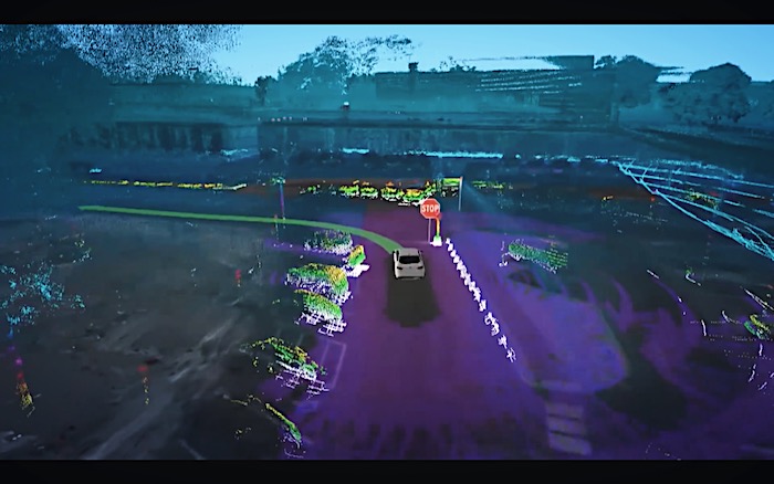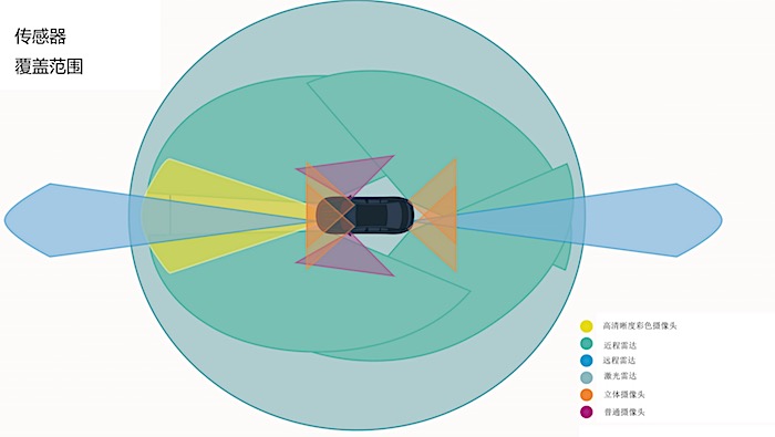全车共搭载了一枚高精度彩色摄像头、4部短距雷达、2部长距雷达、4枚立体摄像头、2枚单目摄像头以及一部LiDAR激光雷达。后者将在车辆行驶过程中,以每秒280万次的频率发射激光脉冲,以探测周围的物体,并借助特殊的软件算法生成一组实时的高分辨率3D图像。