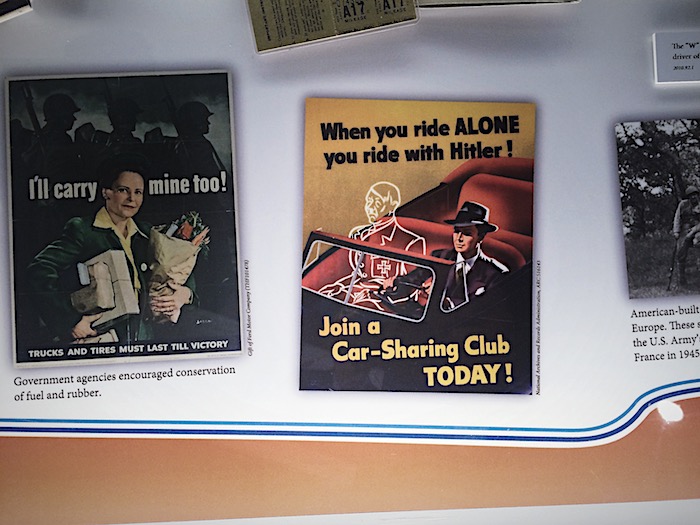 事实上关于汽车分享,这家美国汽车制造商早在其亨利·福特博物馆中给人们预留了一个惊喜。在参观上述场所的过程中,记者意外地发现福特汽车早在二战期间便已开始呼吁驾驶者尽量加入汽车分享俱乐部。时处战争状态的美国对金属、橡胶及燃料的需求量相当巨大,汽车共享也因此成为一种对爱国心的强烈表达。
