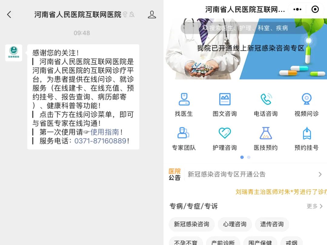 微信关注“河南省人民医院互联网医院服务号”→【在线问诊】进入问诊页面。