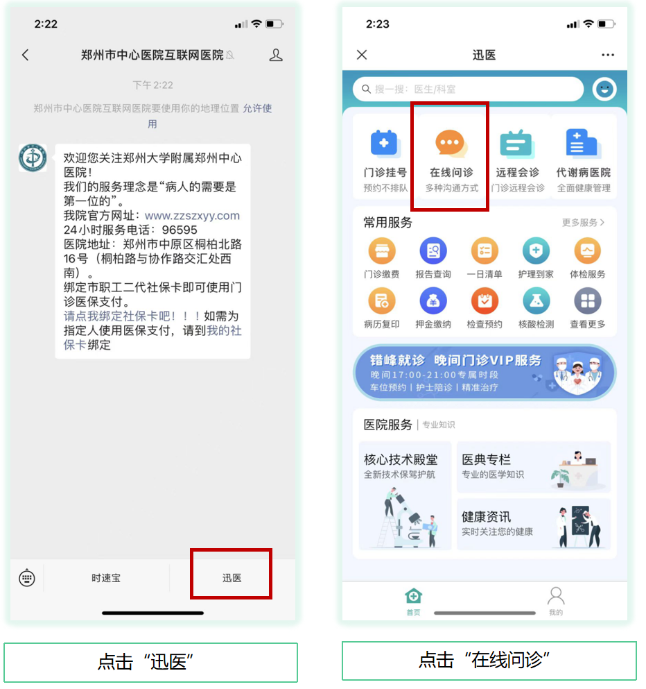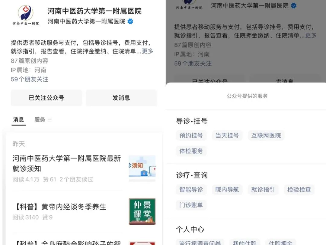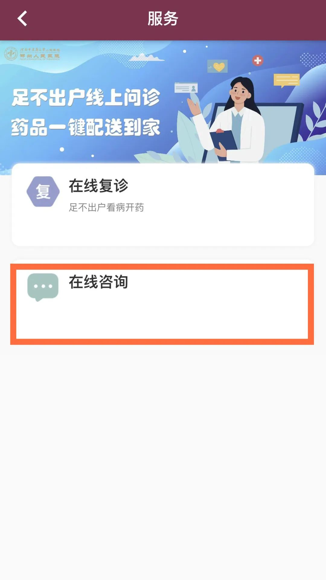 微信关注“河南省中医院”→【服务】进入【在线问诊】页面