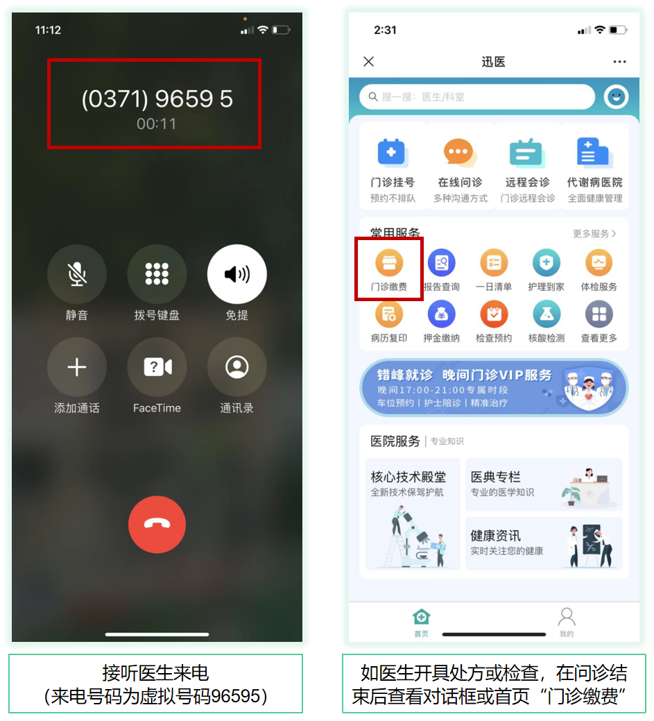 等待医生接诊后,可通过图文问诊、电话问诊、视频问诊的方式与医生进行交流沟通。(注:电话接听过程中调用隐私服务,呈现给医生的电话号码为虚拟号码,保护用户隐私)