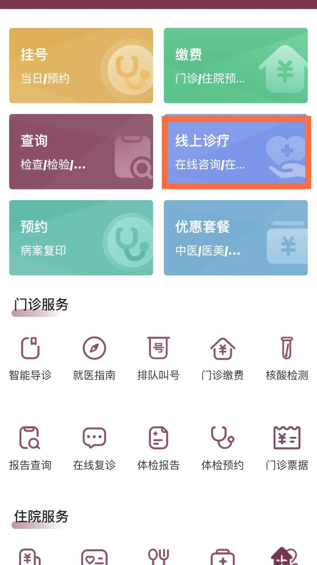 (3)在互联网医院选择有需要的服务专区或者功能模块。