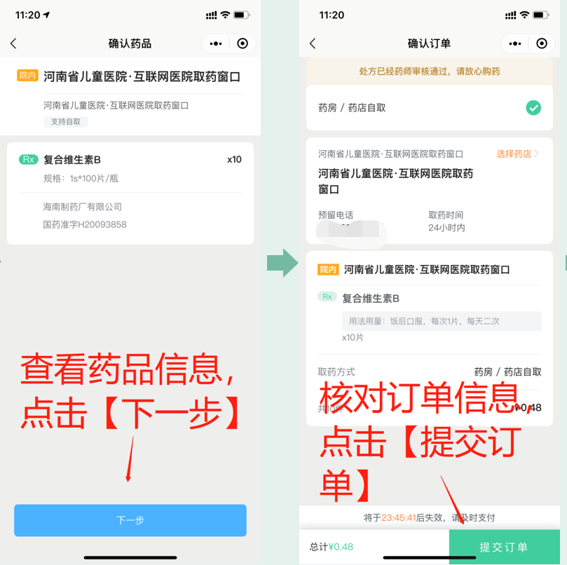 复诊患者,在问诊过程中,医生可为患者开具药品医嘱,在线支付后,可直接前往指定窗口拿药。