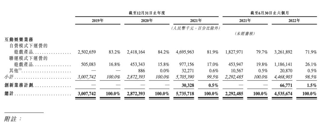 该公司的业务主要分为两大项,互动娱乐业务和创新业务。其中创新业务以快餐品牌“渣渣辉”和潮玩品牌Bro Kooli为主,尽管在2022年上半年,这项业务收入增幅高达120%以上,不过在总营收中的占比只有1.5%。撑起中旭未来大旗的,依然还是互动娱乐业务。