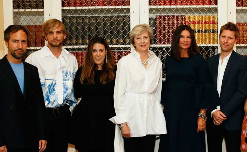 在本季伦敦女装周第一天晚上,英国现任首相Theresa May在首相官邸为英国时装行业重要的从业者们举办了一场私人晚宴,目的之一是为了鼓励各位创意人士在英国脱欧后能够对行业保持信心。Theresa May也因为自身出众而独特的穿衣品味而被时装圈津津乐道。