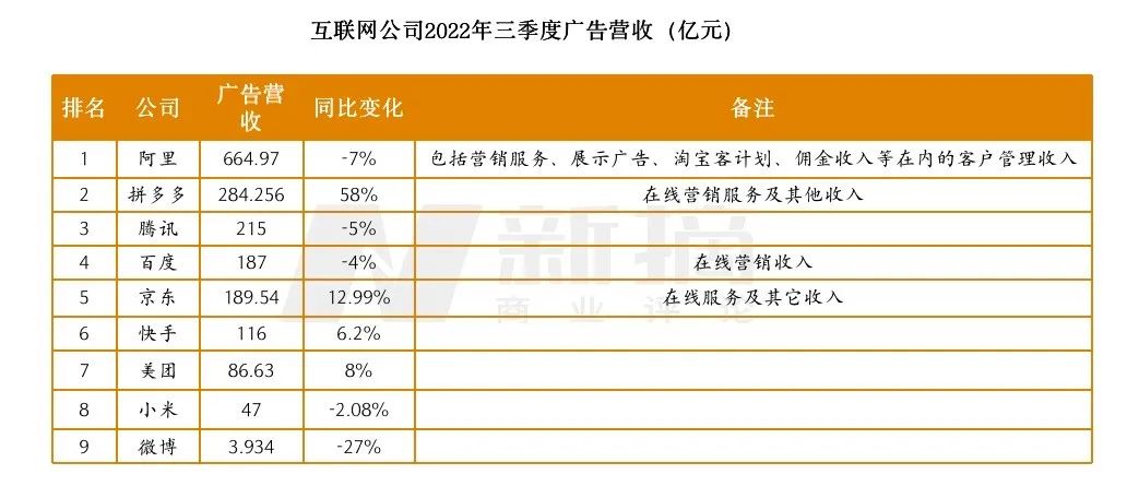 阿里以664.97亿的高额广告收入超拼多多数倍,排名第一,不过其客戶管理收入同比下降7%。按照CEO张勇的解释,是受疫情影响发货或送货不及时,直播等消费方式带来更高的退货率,以及用户在平台上的退货体验越来越好等一系列原因的影响。