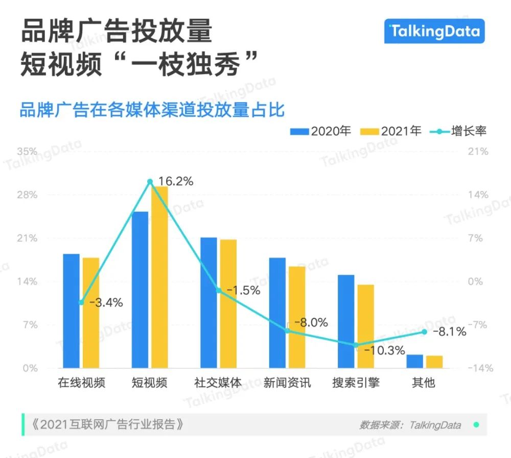 广告效率更高的直播和短视频随之成为企业主青睐有加的渠道。据相关报道,去年品牌广告在短视频的投放占比增长率达16.2%,到了今年,直播和短视频吃掉了互联网广告大盘约30%的份额。