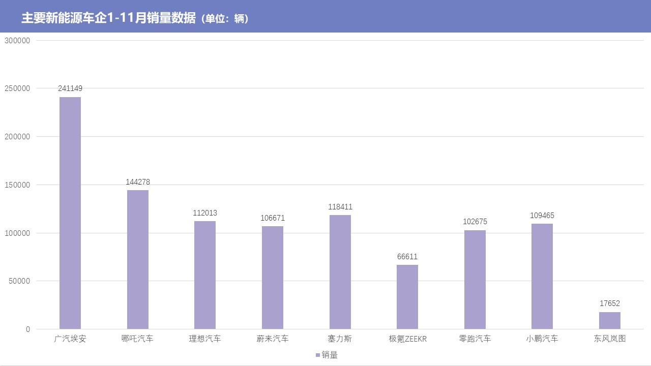 从文章开头前11个月活跃品牌的销量数据可以看到,广汽埃安累计销量达到241149辆,同比增长128%,与友商们明显拉开了差距,几乎是一枝独秀式的存在,提前实现了全年销量翻倍。