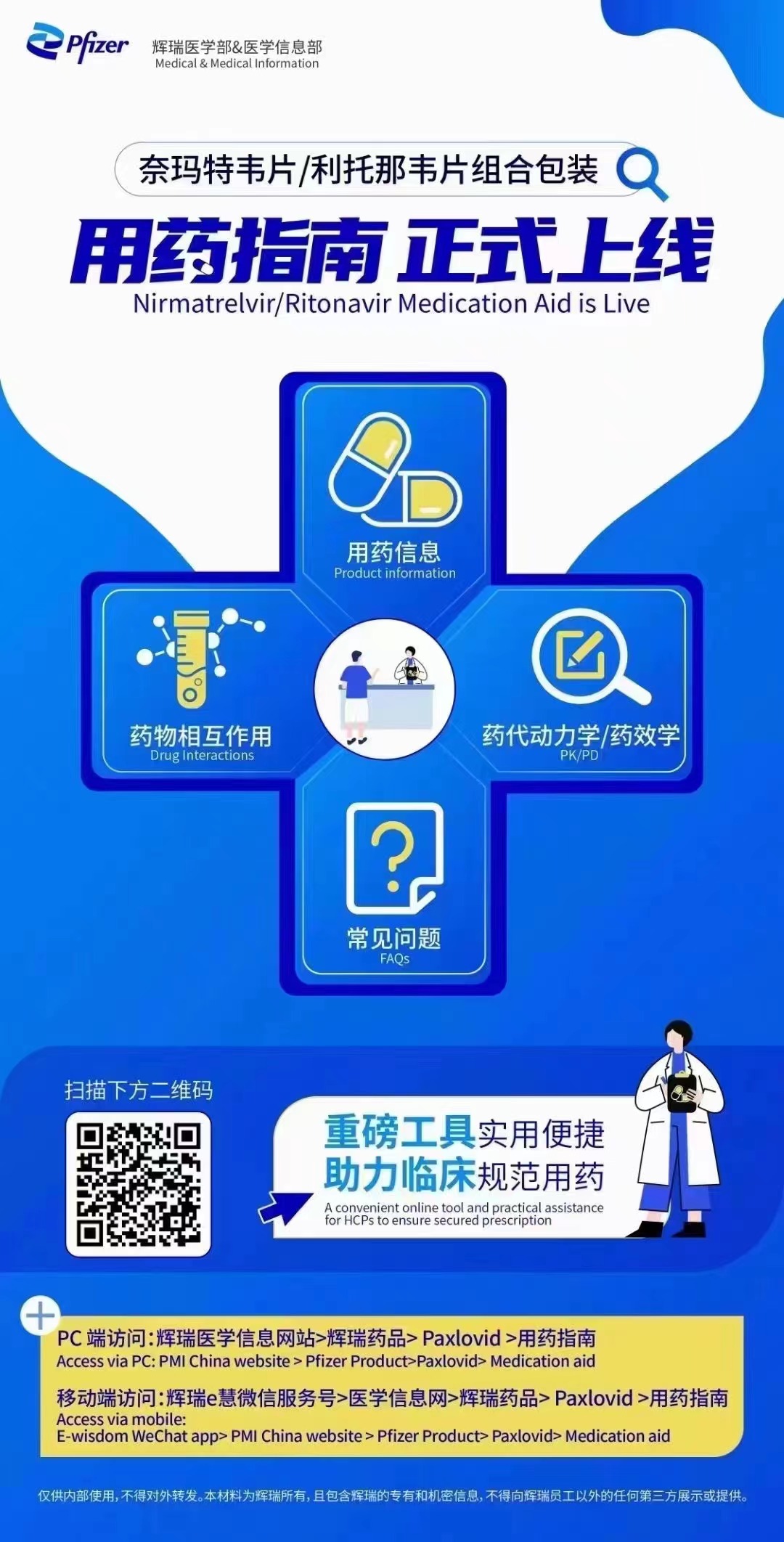 12月14日晚,有药师透露,目前已收到辉瑞新冠口服药Paxlovid (奈玛特韦/利托那韦)的用药指南。该指南由辉瑞医学部&医学信息部制作,图片显示有“奈玛特韦片/利托那韦片组合包装用药指南 正式上线”字样,图片信息主要包含该药品的用药信息、药物相互作用、药代动力学/药效学、常见问题等,可扫码查看。扫码查看后有更详细的药品适应症、用法用量、特殊人群用药、不良反应等相关内容,同时配有相关图片示例和参数数据表格等。目前,前述信息在辉瑞医学信息网站也可查询。