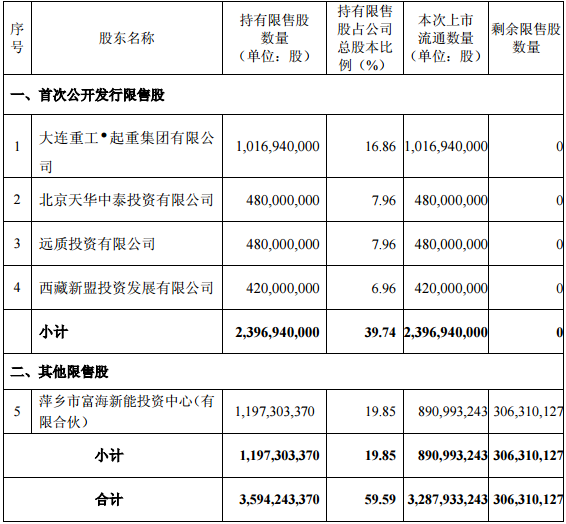 华锐风电在9月22日有32.88亿股限售股上市流通,包括首次公开发行限售股和其他限售股。涉及五家股东,均为企业。华锐风电曾于2014年1月因涉嫌违反证券法律法规的行为被中国证监会立案调查,至今尚未产生最终结果。根据规定,大股东萍乡市富海新能投资中心(有限合伙)暂不得减持股份。