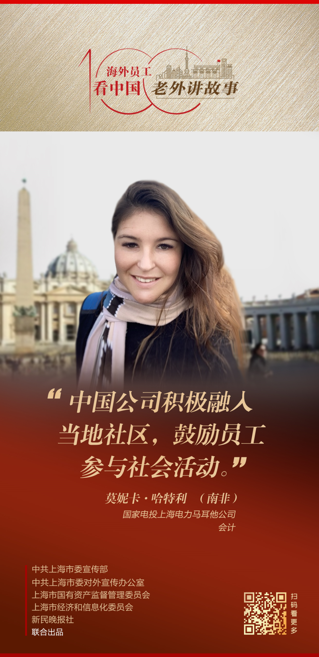 第94期邀请的是来自南非的莫妮卡,她为国家电投上海电力马耳他公司工作。