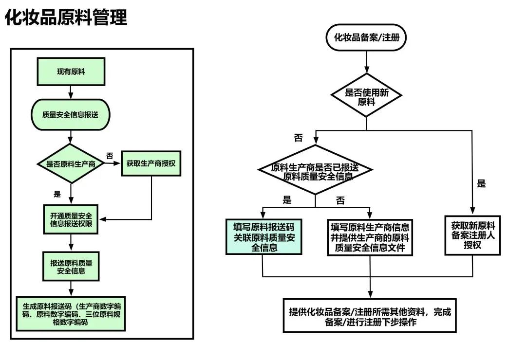 从新品备案流程来看,注册备案人只需提供原料供应商授权的原料报送码或原料安全相关信息(附件14)即可。