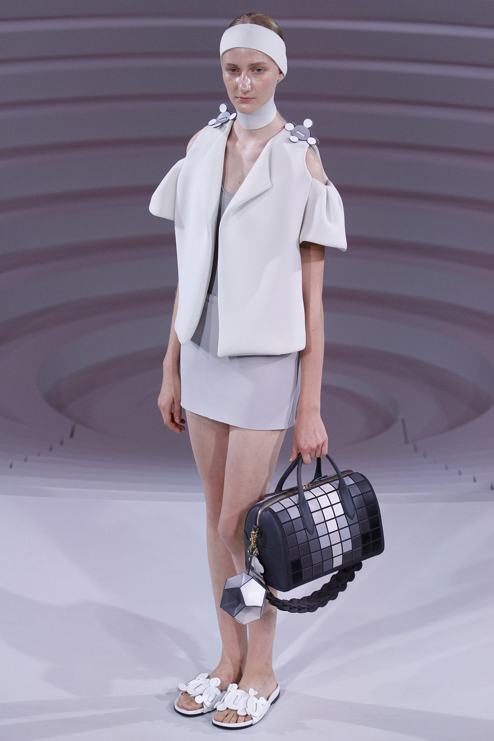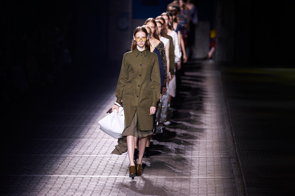 作为第一位登上伦敦时装周日程表的配件设计师,Anya Hindmarch每季秀票都相当“紧俏”。她天马行空的想法不光体现在产品,还有秀场本身。这一次,嘉宾受邀围坐成一圈,直到纯白色圆盖像UFO那样被吊升至半空,我们才恍然大悟:原来底下竟是座未来感十足的“斗兽场”。
