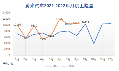 蔚来汽车月度上险量