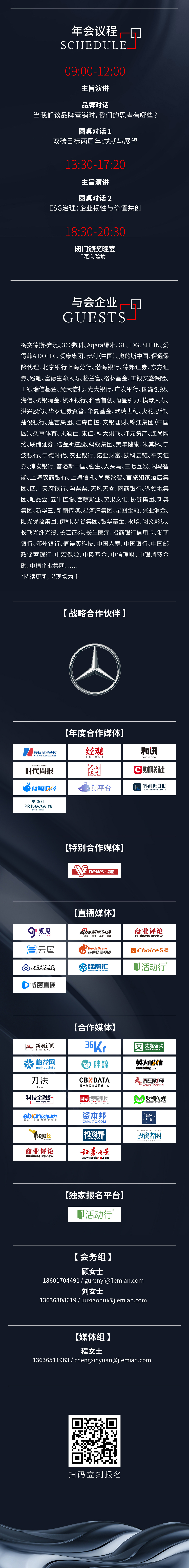 特别鸣谢本次年会战略合作伙伴梅赛德斯-奔驰。作为汽车工业的引领者,梅赛德斯-奔驰始终将安全、可持续的未来出行方式视为发展动力和己任,为此不断对创新、绿色的出行技术加大投入,以打造安全、卓越、令人向往的汽车产品。从“电动为先”到“全面电动”,这家全球闻名的豪华汽车制造商正在加速奔向零排放和软件驱动的未来。立足中国汽车市场,梅赛德斯-奔驰与遍布全国的600余家授权经销商秉持“客户为先”的经营理念,持续“聚焦豪华”、提速“全面电动”,践行“商责并举”的可持续发展,力求以“新豪华主义”的产品与“心豪华主义”的服务,满足中国客户不断升级的可持续豪华出行需求,助力中国社会的可持续发展。