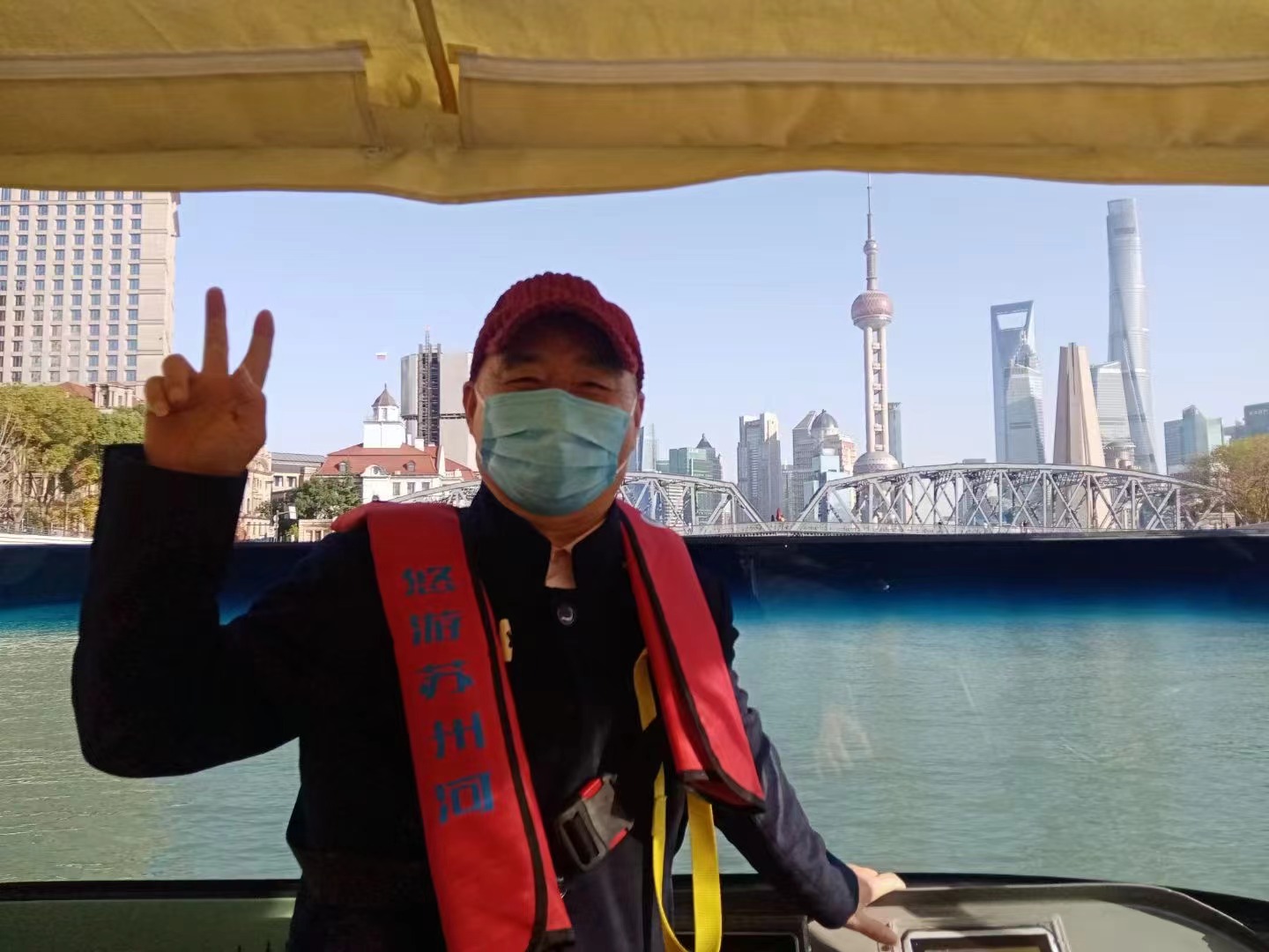 家住嘉定区的市民钱秋发是今天游线首批乘客之一。过去几十年间,钱秋发亲眼见证了苏州河从黑臭到水清岸绿的巨大变化。今天,他抢到了苏州河水上航线首日运营的最后一张船票。