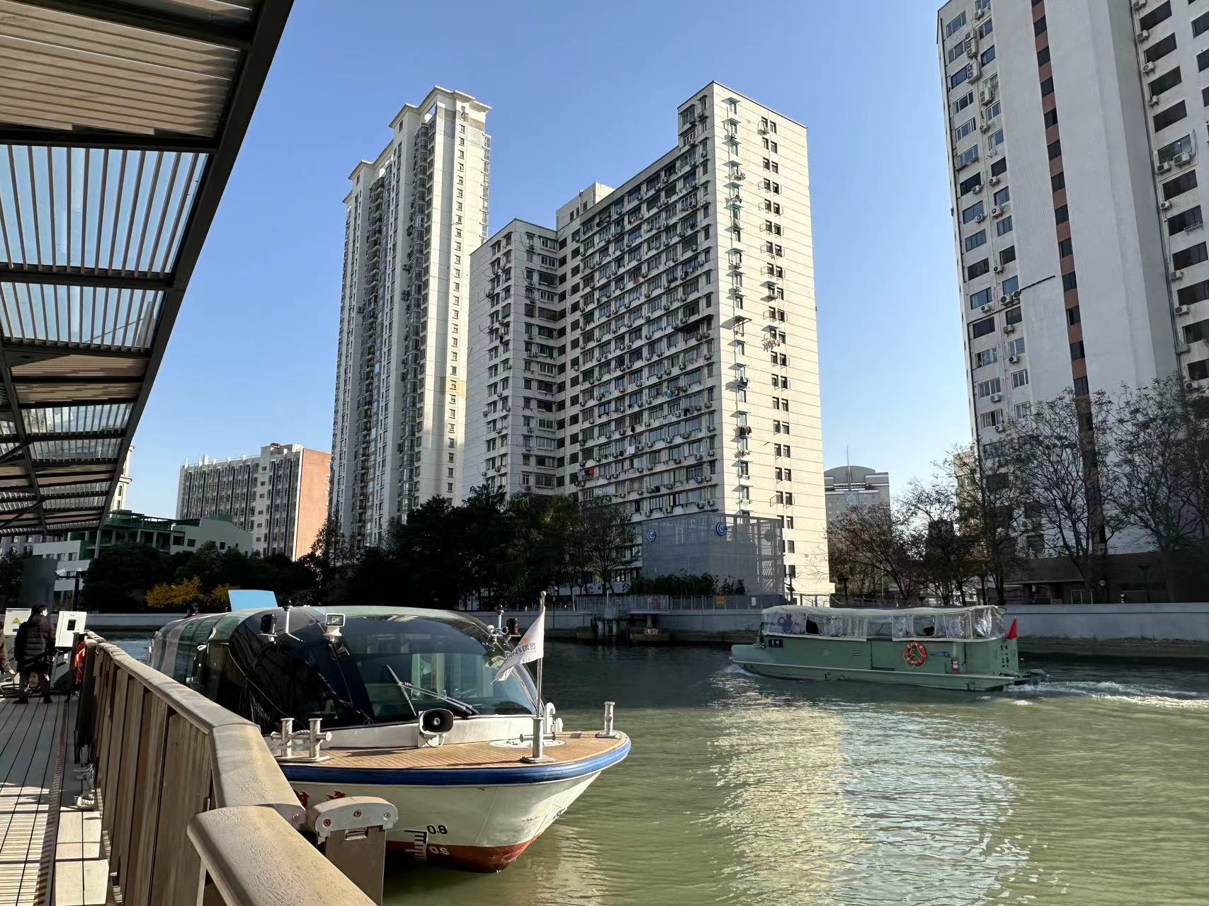 水清岸绿的苏州河长风码头旁,几条游船缓缓出发,一路展现苏州河畔旖旎风光,2022年12月15日,途经静安区、普陀区、长宁区、黄浦区、虹口区等五区的“悠游苏州河”水上航线投入运营。