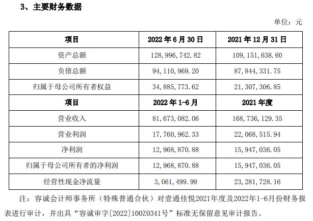 同时,还采用资产基础法进行评估,壹通佳悦总资产账面值为12899.67万元,评估值为13985.69万元,增幅8.42%;负债账面值9411.10万元与评估值相同;净资产账面值为3488.58万元,评估值为4574.59万元,增值1086.01万元,增幅31.13%。