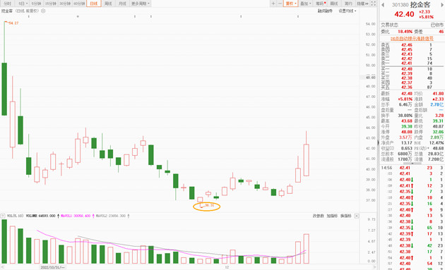 挖金客于2022年10月25日在创业板上市;上市首日以45.18元/股收盘,涨幅为29.90%,换手率为57.25%。就在11月28日,上市仅一个月,挖金客股价触及36.31元/股的新低,距离发行价34.78元只差1.53元,跌至“破发”边缘。