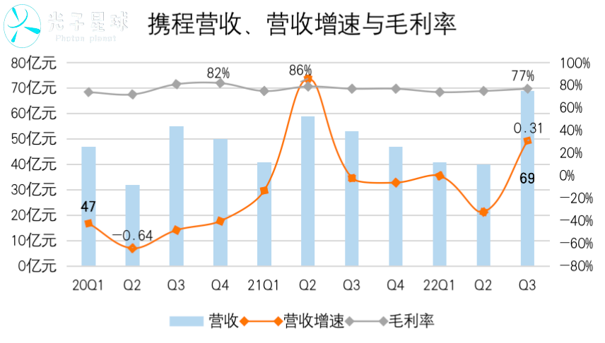 12月15日,携程发布2022年第三季度财务数据,财报显示,该季度集团净营收为69亿元,同比增长29%,净利润2.45亿元,经调整EBITDA为14亿元,同比增长164%。