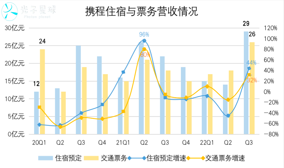 从携程第三季度财报可以看到“稍有阳光就灿烂”的情况。截至9月30日,携程住宿预订收入29亿元,同比增长32%;交通票务收入26亿元,同比增长44%。而住宿反弹,尤其是8月波动期间,携程保持了正增长,是其该季度净利润同比扭亏的主要原因。