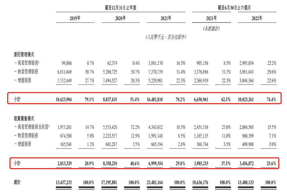 2022年上半年,万达商管委托管理模式收入为100.2亿,收入占比74.4%;租赁模式收入为34.6亿,收入占比25.6%。