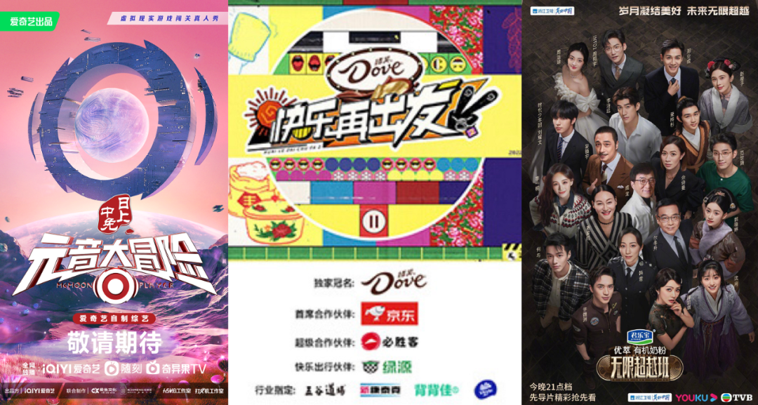 具体来说,《快乐再出发2》从前季的仅1家冠名涨至本季的8家赞助,爱奇艺的《元音大冒险》和优酷的《无限超越班》尽管都是刚开发的新综艺,但前者揽下包括中免日上APP、骁龙在内的6个金主,后者则被君乐宝、三星等5个品牌争相追投。