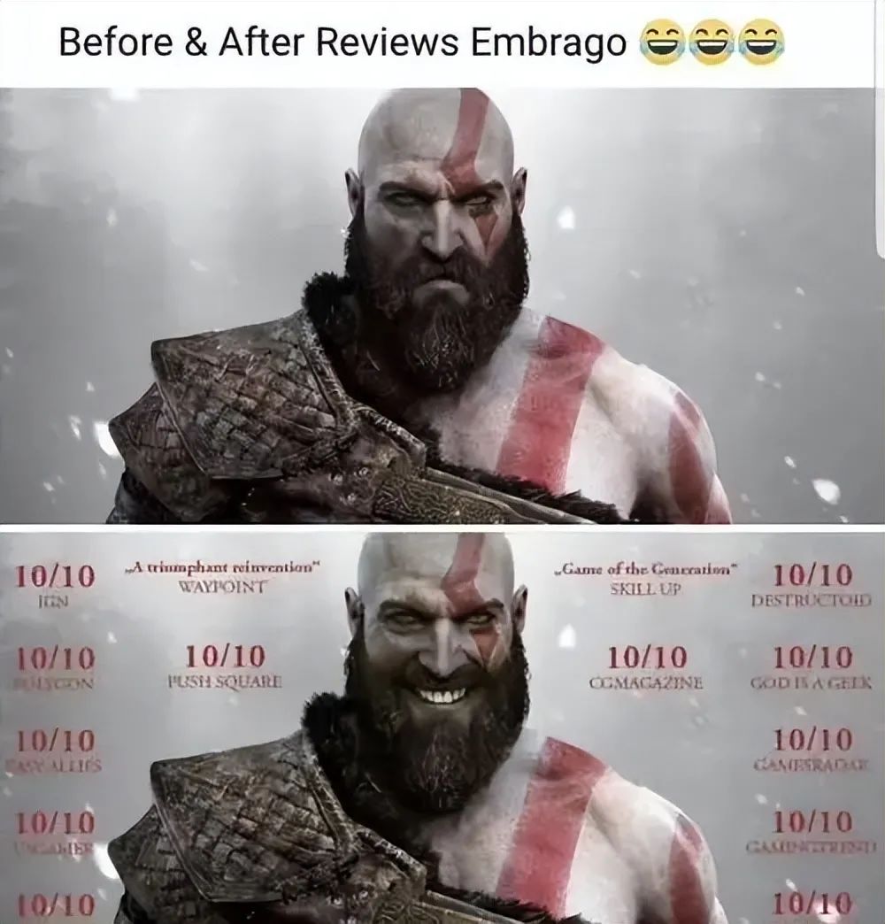 而《战神5》则更像是优等生的正常发挥,这款PS独占3A游戏在116家媒体的评分全部为好评。IGN、Push Square、VGC 数十家媒体给出了满分评价。IGN评价:“相比之下,许多同时代的游戏看起来平庸得多。”Metacritic评价:“跟近期发布的其他游戏相比取得了‘断层领先’。”