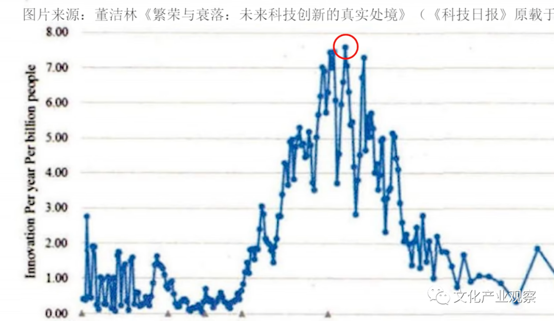 “人类的重大科技创新成果,在1873年就已经到达了顶峰,此后是不断衰退状态。”