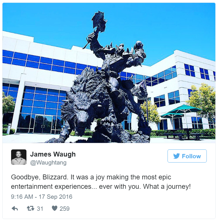 继两位前高管兼资深设计师罗伯•帕多(Rob Pardo)和克里斯·梅森(Chris Metzen)离开暴雪后,9月17日,《魔兽世界》的首席任务设计师及神器系统设计师Craig Amai也宣布自己将在设计完神器系统后离职,寻找新挑战。