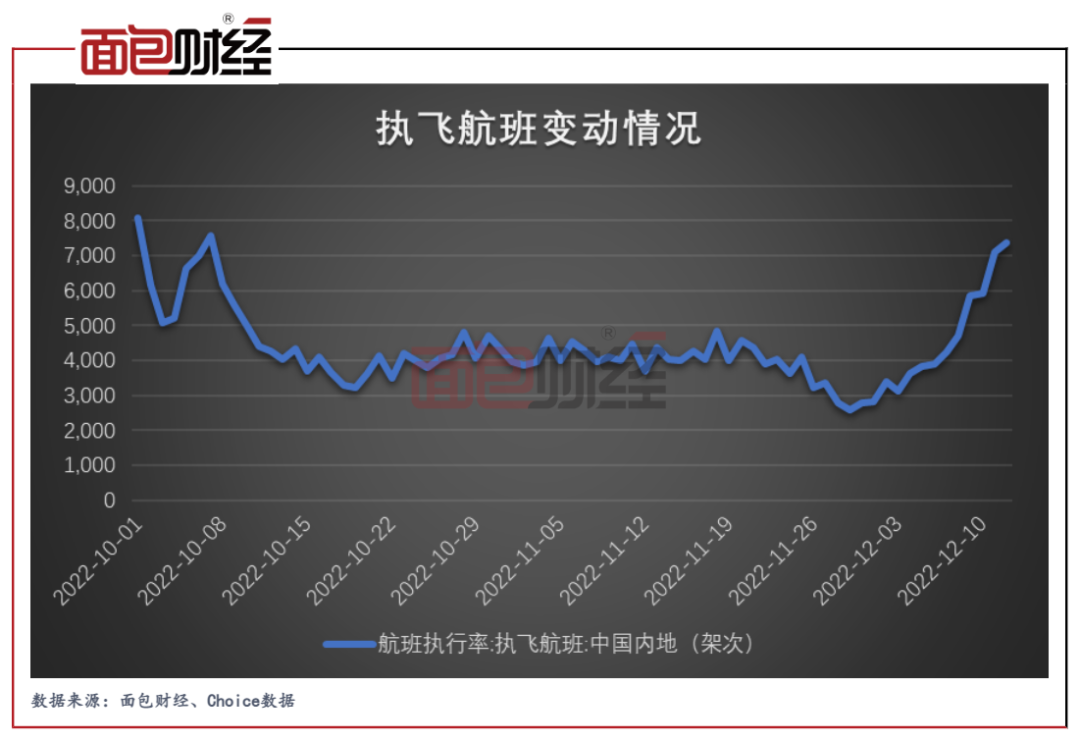 数据显示,进入12月以来,中国内地每日执飞航班数量直线反弹,由11月末不足3000架次上升至目前超过7000架次,人员流动明显回升。