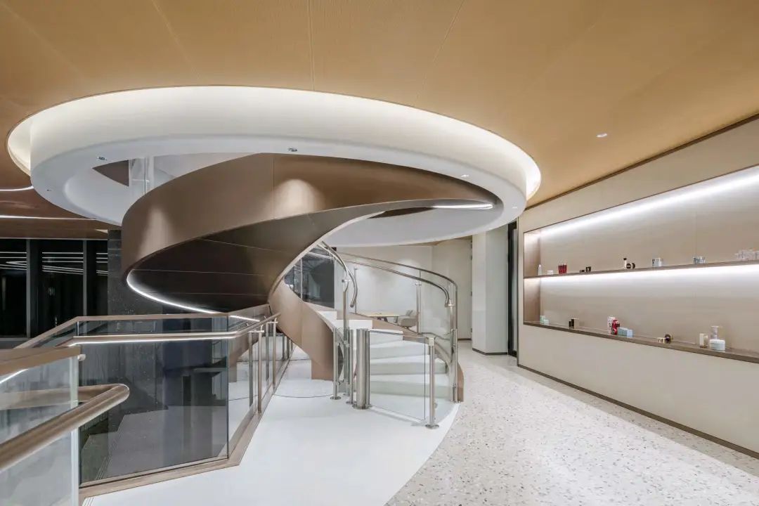 据介绍,研发中心落户上海闵行漕河泾科技绿洲园区,占地12000平方米,融汇了现代及传统中国设计元素与建筑美学,体现在每个楼层的设计细节上——顶楼露台形韵独特,颇有“天圆地方”之感;水幕玻璃和旋转楼梯则寓指上善若水的“水”元素,以具形的器物之状呈现出来,让“水”流动在整个研发中心的大厅与内部,饱含雅诗兰黛向中国传统文化致敬的美意与对中国市场的承诺。