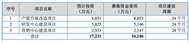 本次IPO,天松医疗拟募资1.61亿元,其中0.89亿元用于产能升级改造、0.51亿元用于建设研发中心,0.21亿元用于建设营销中心。