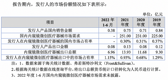 根据招股书,目前,我国医用内窥镜行业仍以进口品牌产品为主,德国卡尔史托斯、日本奥林巴斯、美国史赛克、德国狼牌等外资厂商,占据了我国内窥镜微创医疗器械行业约四分之三的市场份额,国产品牌市场占有率普遍偏低,因在成像稳定性、清晰性与重复使用次数等方面与进口品牌仍存在较大差距,国产品牌主要集中于中低端市场。