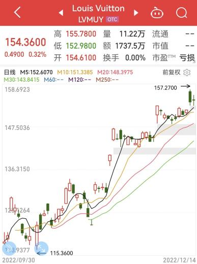 与之对应的是,同期LV的股价最大涨幅为37.64%,此消彼长之下,阿尔诺走到全球舞台的中央。