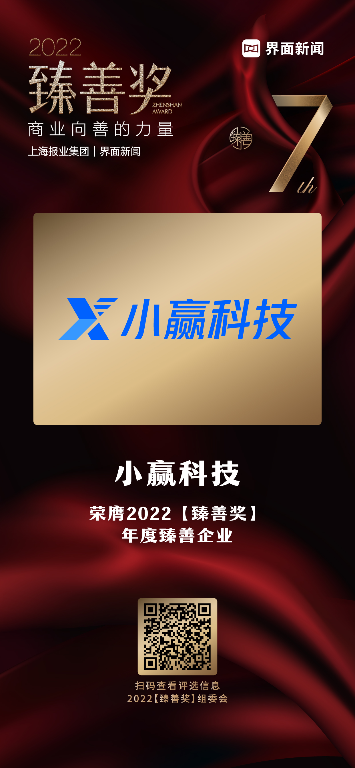 12月21日,上海报业集团 | 界面新闻在上海中心举办了2022【臻善奖】颁奖典礼,并正式公布了本年度获奖名单。聚“商业向善”之力,本届【臻善奖】吸引了一大批在公益慈善领域有所贡献的优秀企业和公益人士参与。小赢科技以科技赋能金融,引领商业向善,荣膺年度臻善企业。