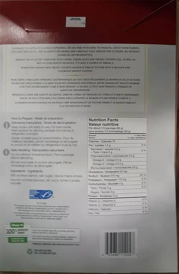 加拿大乐活网(lahoo.ca)获悉,这两款烟熏三文鱼都开包即食,在安省销售较多,但加拿大其他省份也有可能有售。涉嫌感染李斯特菌的烟熏三文鱼看起来与正常三文鱼无异,有可能不会出现异味或看起来变质。但食用之后,有可能出现呕吐、恶心、持续发烧、肌肉酸痛、严重头痛及脖颈酸痛等症状。