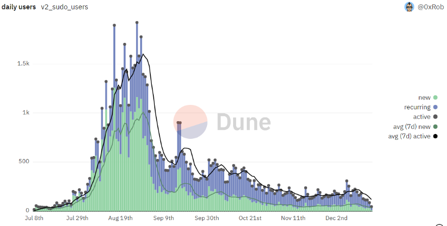 SudoSwap日活曲线 数据来源:dune/sudoamm