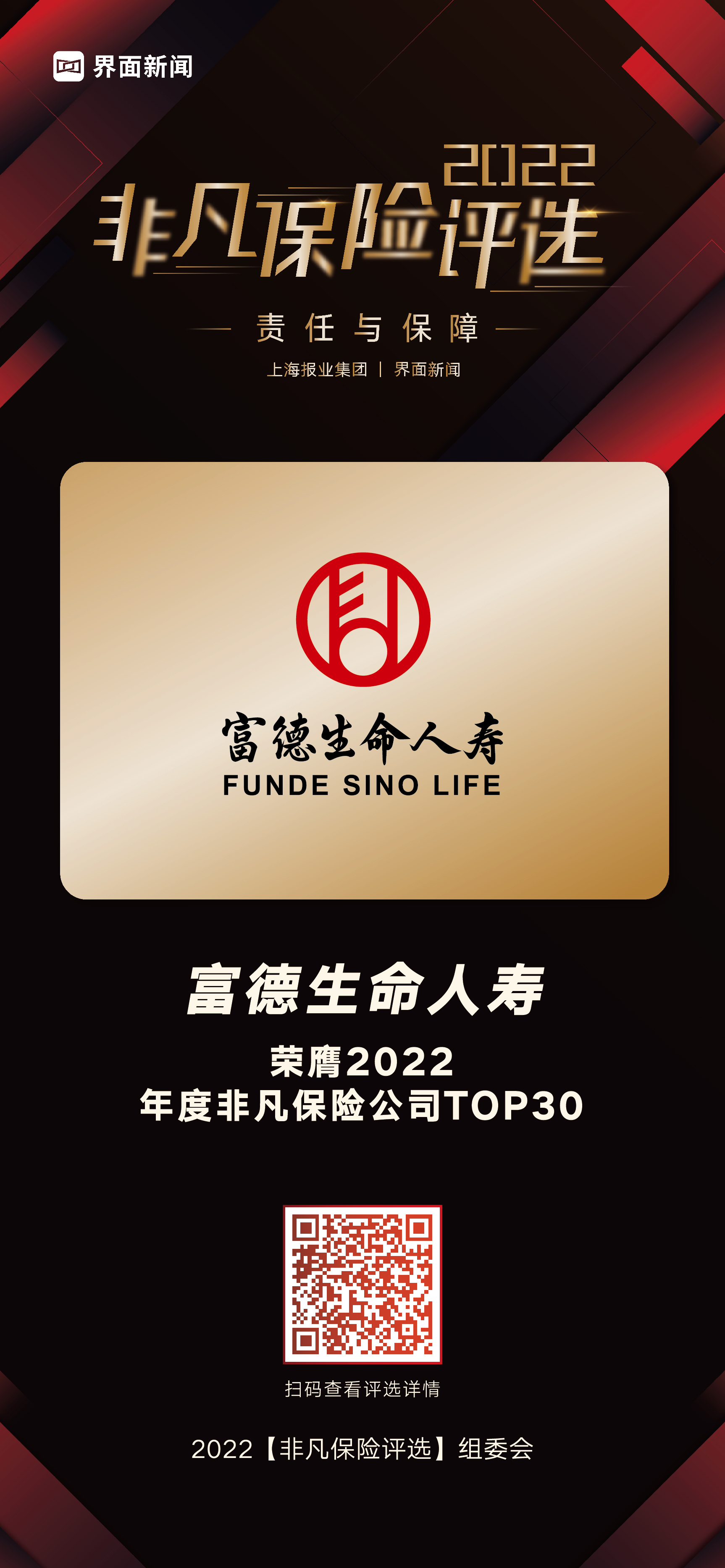 12月20日,由上海报业集团|界面新闻主办的2022【非凡保险评选】颁奖典礼在上海成功举办,富德生命人寿上榜2022【非凡保险评选】年度非凡保险公司TOP30。