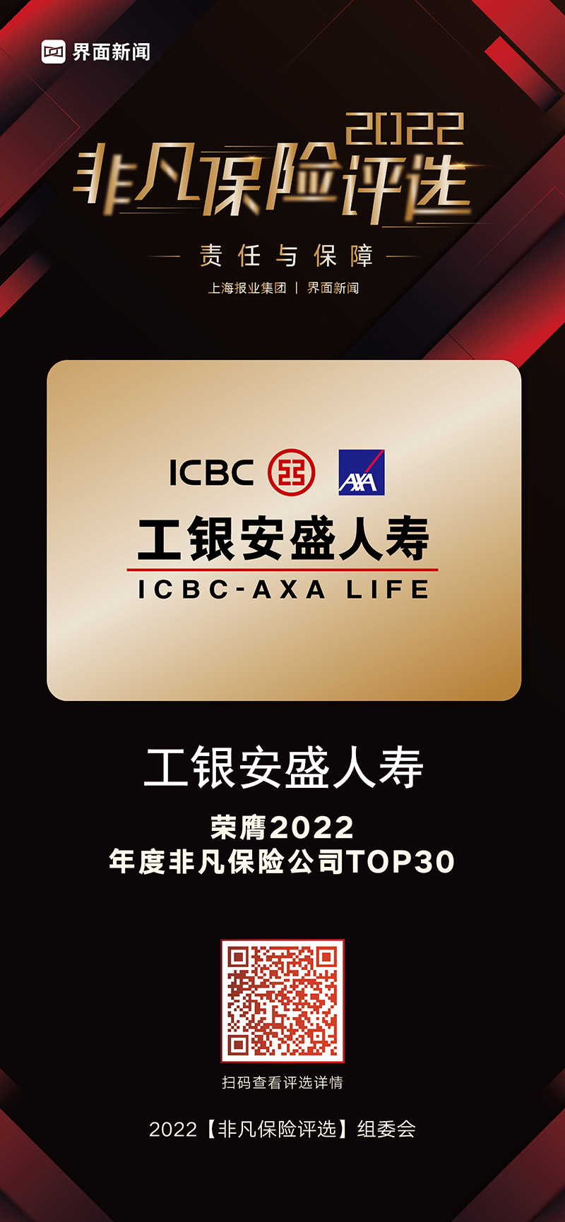 12月20日,由上海报业集团|界面新闻主办的2022【非凡保险评选】颁奖典礼在上海成功举办,工银安盛人寿上榜2022【非凡保险评选】年度非凡保险公司TOP30。