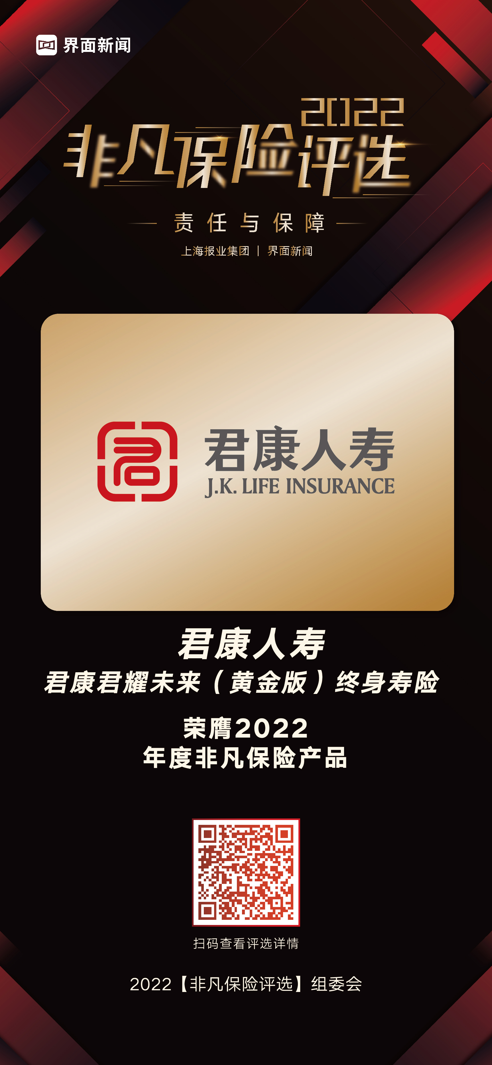 12月20日,由上海报业集团|界面新闻主办的2022【非凡保险评选】颁奖典礼在上海成功举办,君康人寿上榜2022【非凡保险评选】年度非凡保险产品。