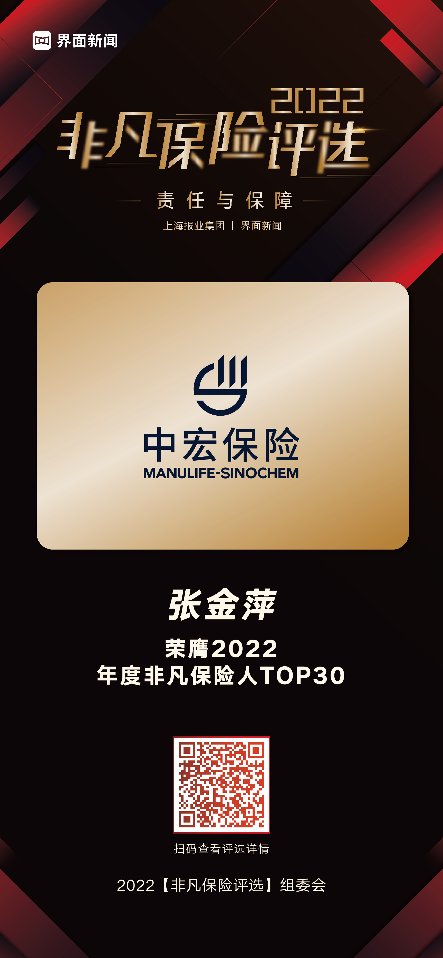 由上海报业集团|界面新闻发起的非凡保险评选,聚焦当下保险行业商业模式变革、数字化转型等趋势,秉持公平公正原则,臻选优秀保险公司、产品和保险精英,依托界面新闻的行业影响力,推动保险行业加速转型,向前发展。