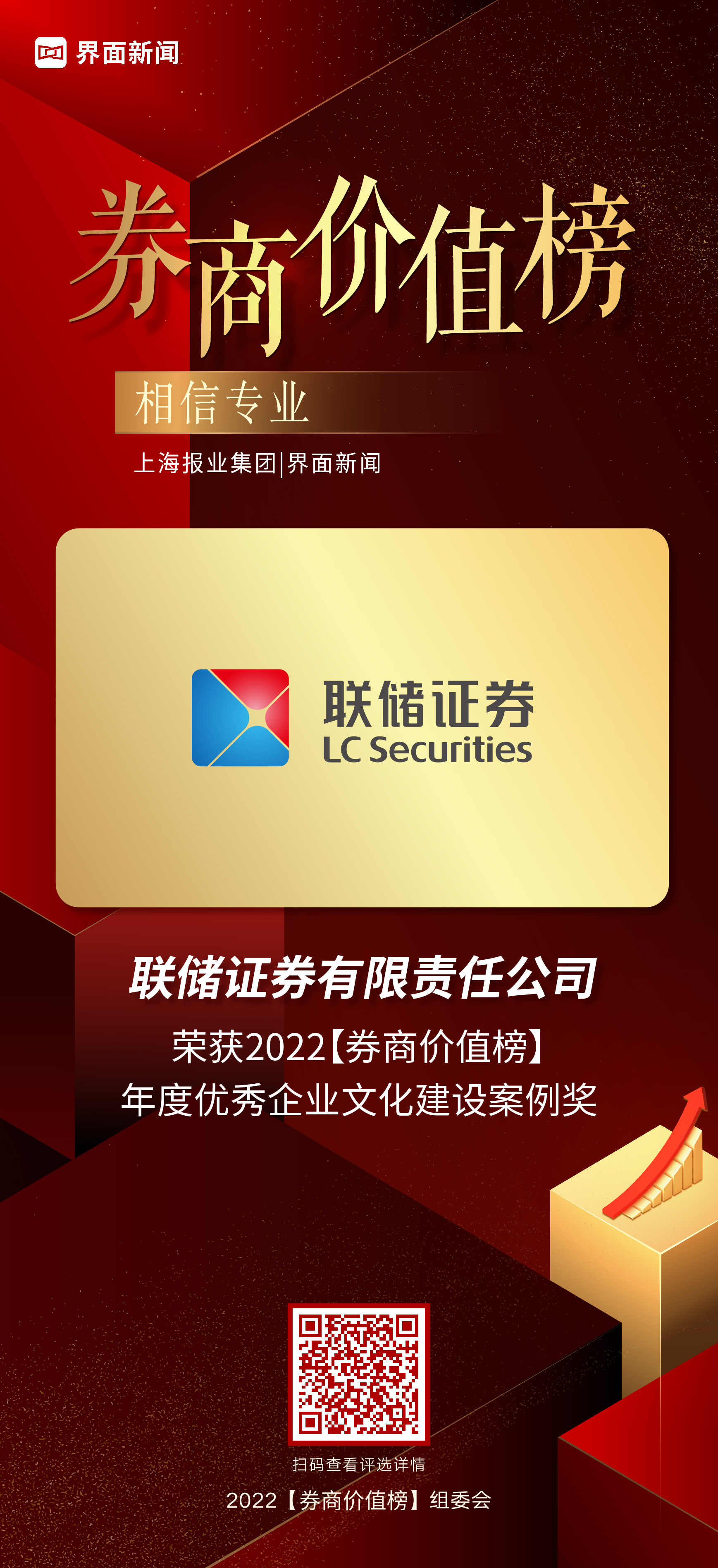 联储证券有限责任公司凭借多元化的发展,荣膺【2022券商价值榜】年度优秀企业文化建设案例大奖。