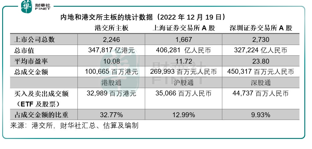 见下表,单就2022年12月19日的数据而言,港股通买卖成交额占港交所主板总成交金额的比重最大,扩容带来的资金流入,有利于推动港交所的交易活跃性,提升其自身的竞争力。