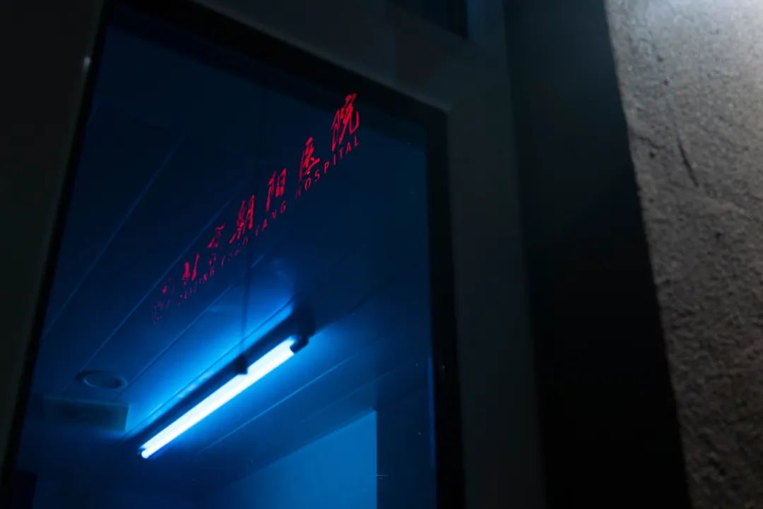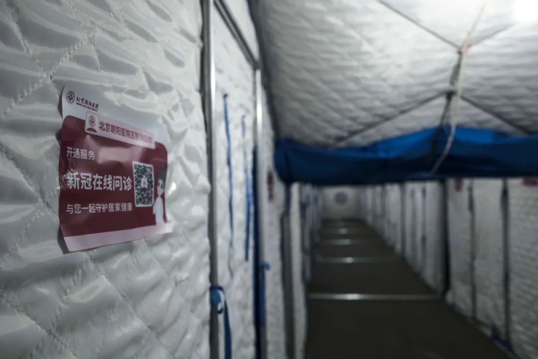▲ 朝阳医院给排队患者设置的等候区,站在里面会暖和一些,但这个夜晚,排队的人不算多。