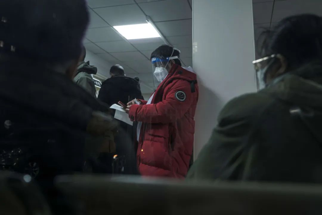 ▲ 发热门诊的候诊大厅,取完号的人们正在等待叫号。