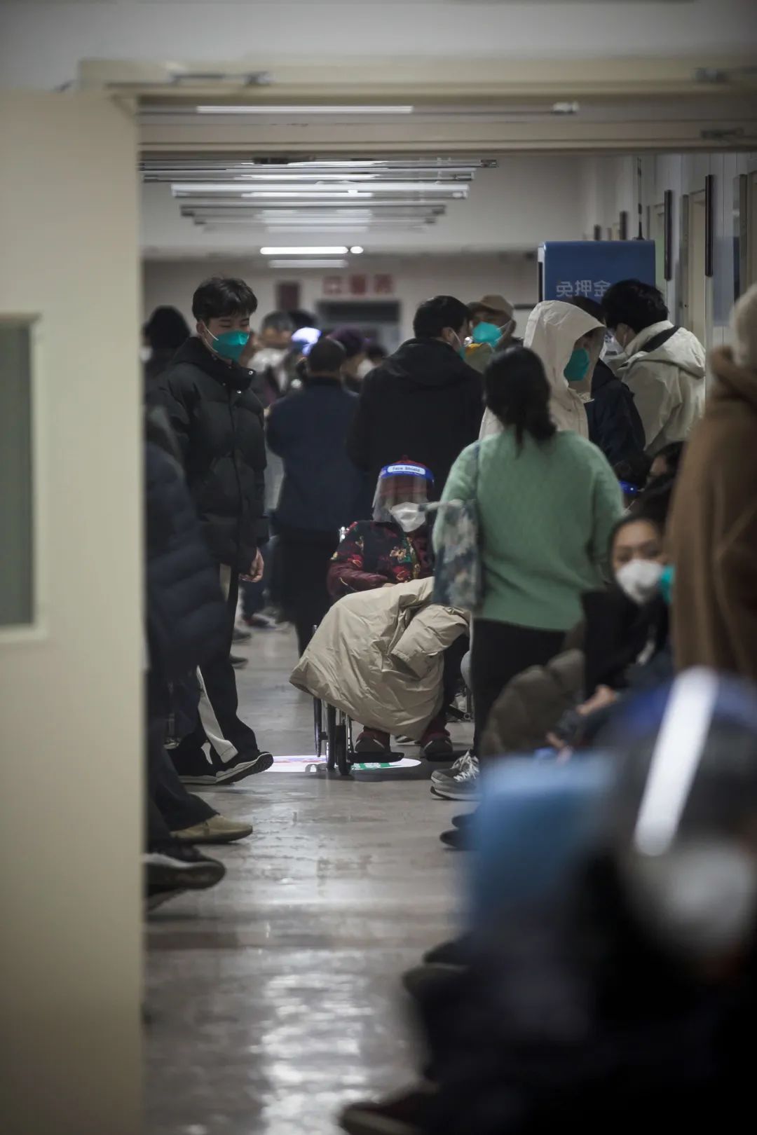 12月15日晚,在朝阳医院发热门诊,这里的空气里,弥漫着拥挤、焦急、担忧的气息。晚上9点,候诊台已经叫到了800多号。医护人员的脚步和语速飞快,每个诊室门口都围了一圈患者和家属。当晚的感染患者中,大多是老年人,其中不少都罹患癌症等严重基础疾病,有的则是因为各种原因无法接种疫苗。在疫情里,他们是最脆弱的那一类人。