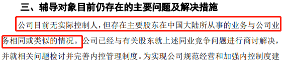 江苏证监局网站2021年8月19日披露了一则恒美光电辅导工作进展报告,保荐机构海通证券在报告中指出目前公司存在的主要问题是,“公司目前无实际控制人,但存在主要股东在中国大陆所从事的业务与公司业务相同或类似的情况”。